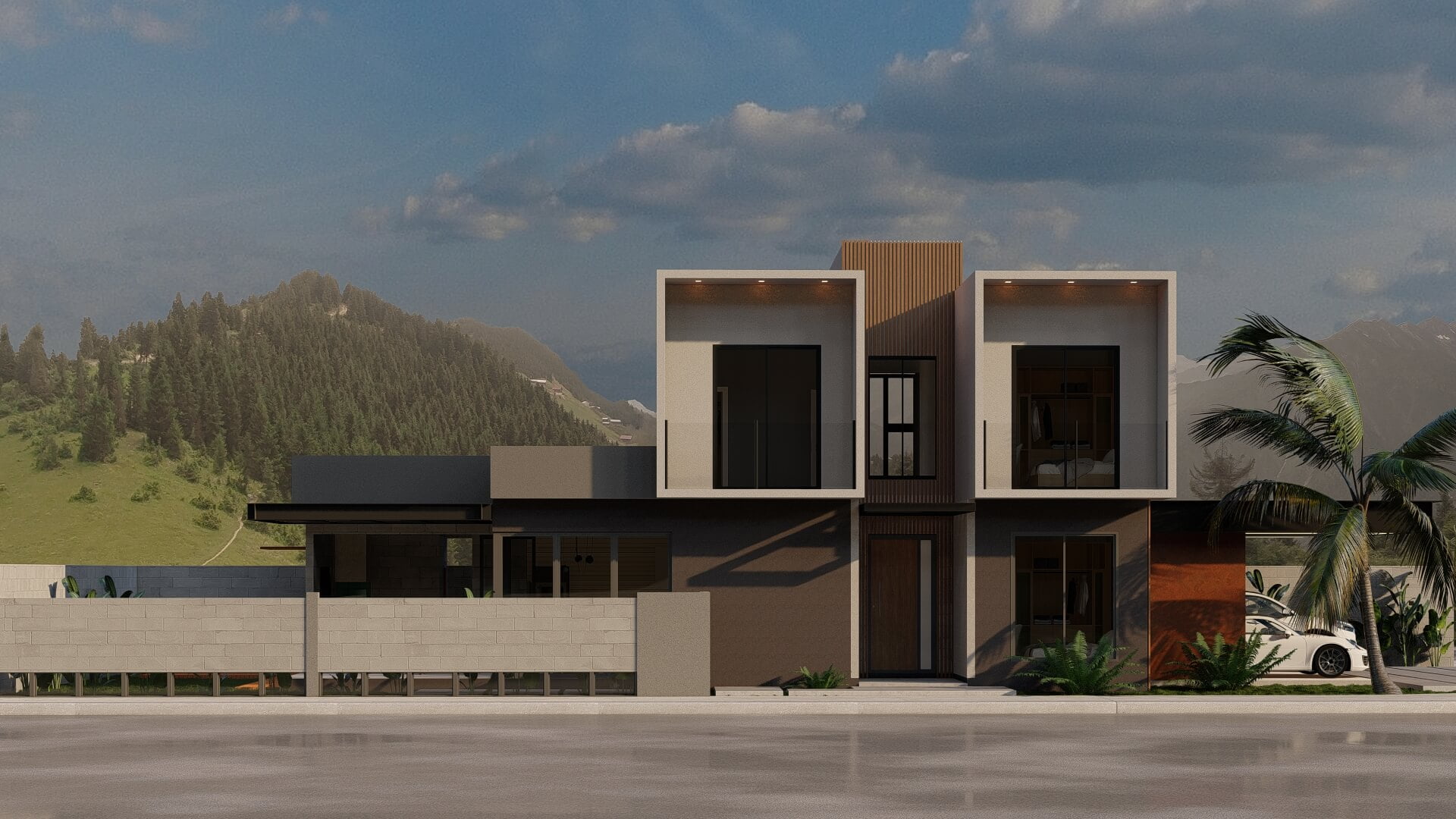 O Projeto AH é uma expressão de elegância e praticidade em um ambiente residencial. Concebido para transformar um terreno de esquina, este projeto é um exemplo notável de como harmonizar múltiplas possibilidades de acesso e fachadas aparentes de maneira sofisticada.
