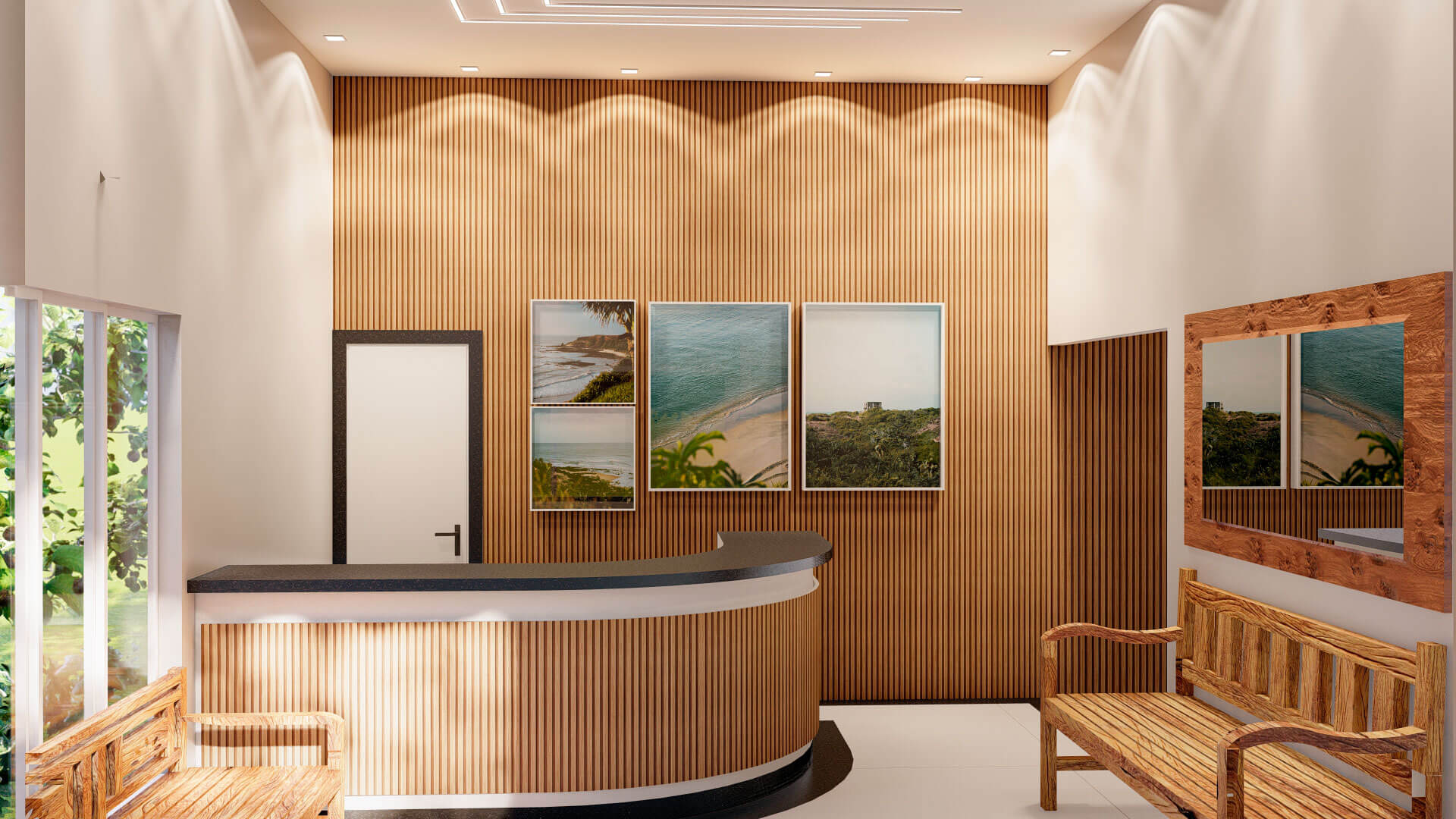A iluminação foi uma parte essencial dessa reforma. A substituição das luzes de tonalidade Branca Fria por iluminação mais quente foi uma escolha deliberada para trazer aconchego e conforto ao ambiente. Essa alteração teve um impacto profundo na atmosfera, tornando a recepção mais acolhedora e convidativa para os hóspedes.
