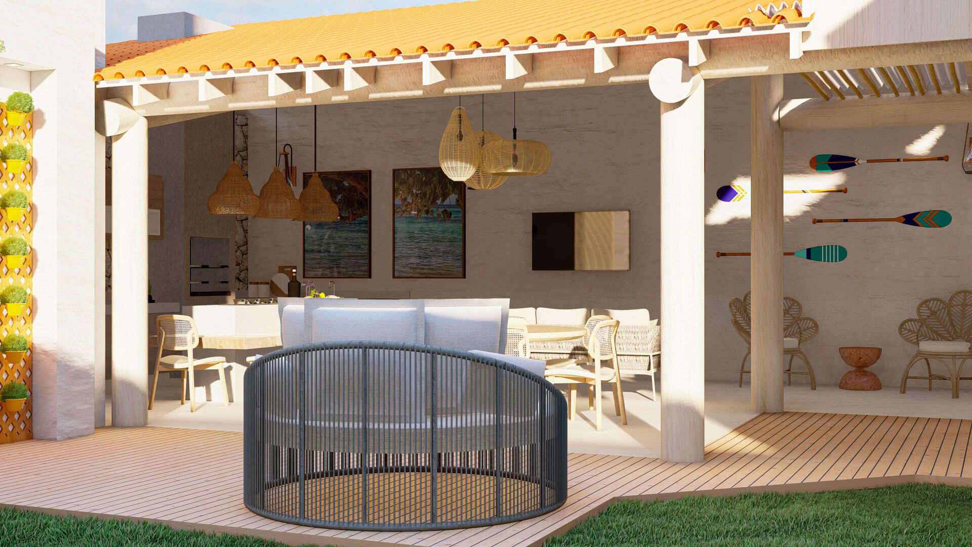 O Projeto de Interiores “GS” é uma maravilhosa celebração da beleza natural e da harmonia estética. Focado principalmente na área gourmet, este projeto utiliza tons de madeira para criar um ambiente caloroso e convidativo, onde cada elemento foi cuidadosamente selecionado para complementar essa estética distinta.